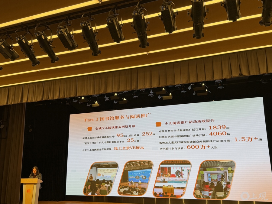 2026“全民阅读活动周”暨公共图书馆服务宣传周期间,4月22日下午,《2025年上海市公共图书馆少年儿童阅读报告》在上海少年儿童图书馆发布,随着关于少儿阅读的一个个数据揭晓,台下不时发出惊叹声。